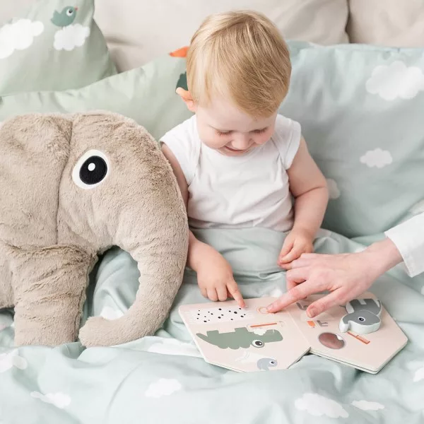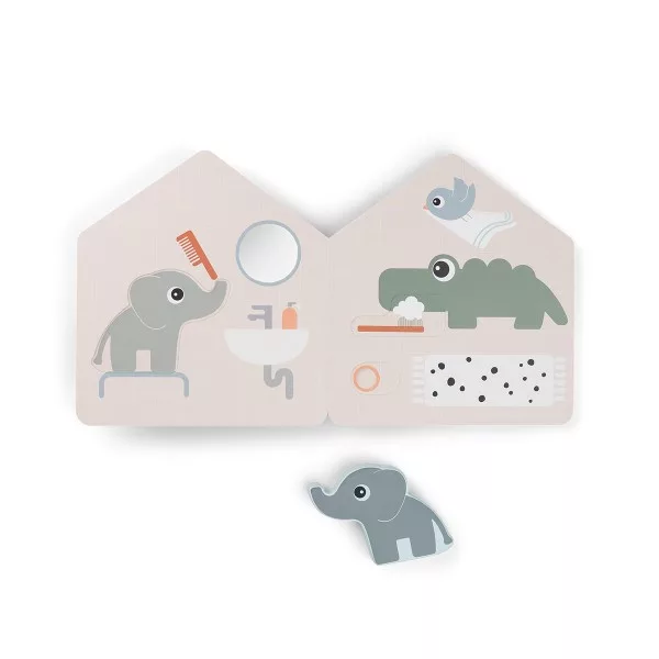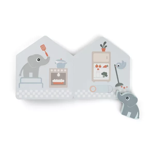 A könyvhöz tartozó Elphee fafigura segítségével a kicsik saját történeteket alkothatnak, miközben oldalról oldalra vezetik kedvenc elefántjukat. A színes, interaktív részletek játékosan stimulálják a képzeletet és a kreativitást. Mosd meg Croco fogát a fogkefe mozgatásával, vagy bújócskázzatok és figyeld, honnan kukucskál ki Croco.
