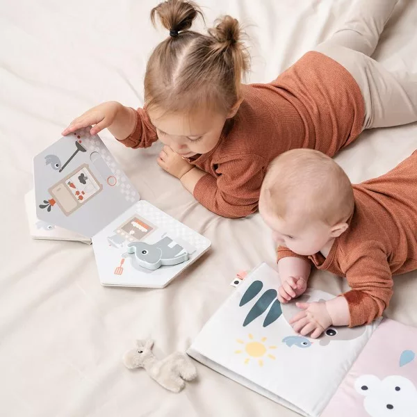 Lépjetek be Elphee, a vidám elefánt otthonába, ahol minden lapozással új kaland vár! Ez a különleges aktívkönyv nemcsak szórakoztat, hanem fejleszti is gyermeked készségeit: a lapok forgatása erősíti a finommotorikát, a mutogatás javítja a kéz-szem koordinációt, a közös mesélés pedig gazdagítja a szókincset.
