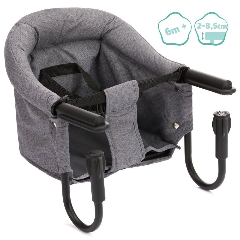 A háttámla ergonomikus kialakítása megfelelő tartást biztosít, a levehető és mosható huzat pedig segít a higiénia megőrzésében. A szék hátulján praktikus zseb található, amelyben elfér az előke, a kanál vagy egy csomag nedves törlőkendő.